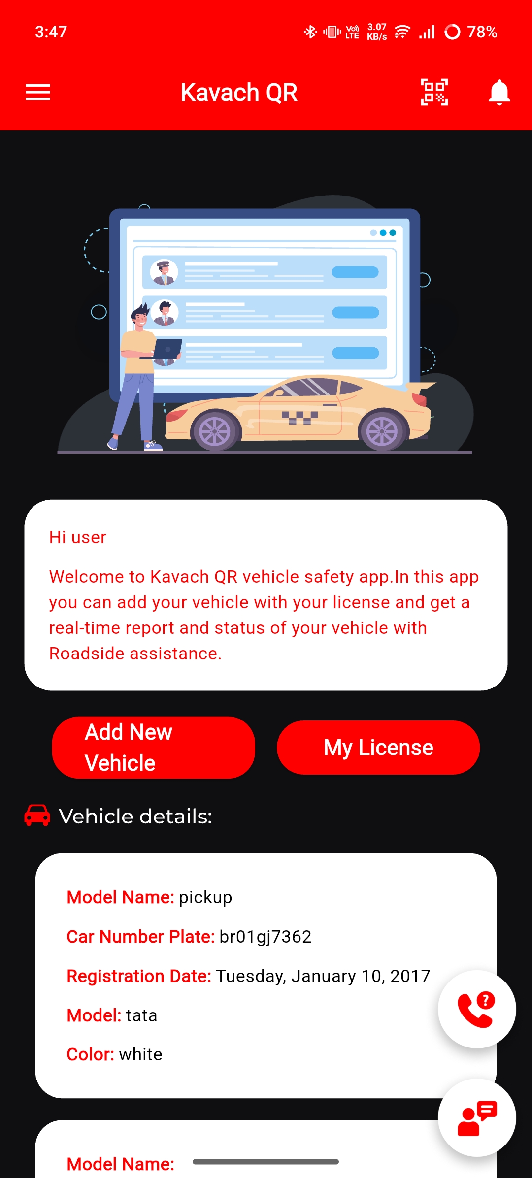 Kavachqr is your trusted partner in road safety and smart vehicle management. Using innovative QR technolog , our app makes it simple to safeguard your vehicle, connect in emergencies, and manage parking more efficiently.